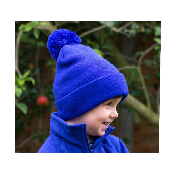 100% Polyacrylique toucher doux. Tricot épais, double épaisseur, couvrant, bord replié, pompon en décoration. Lavable à 40°.